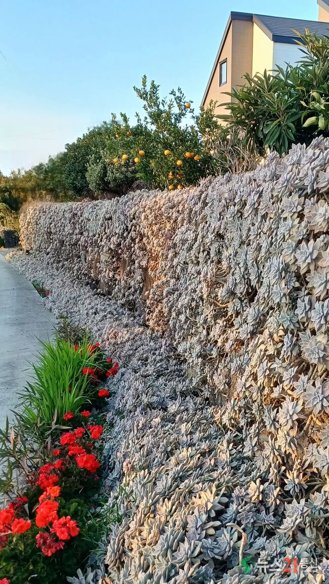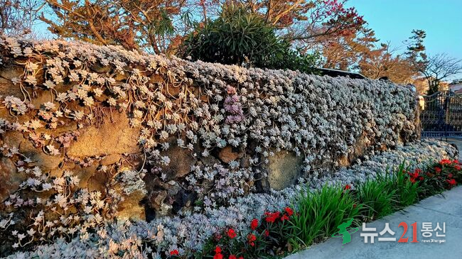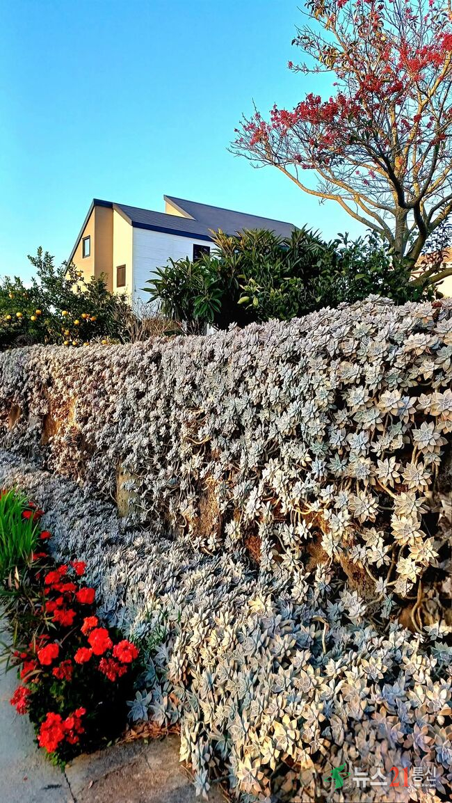 제주의 현무암으로 쌓은 담장이 바다와 마을 풍경을 따라 길게 이어진 것이 특징이다.