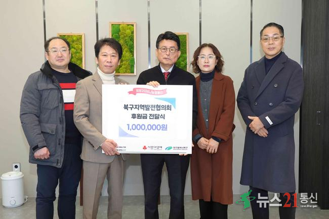 (뉴스21통신) 최우성기자 = 대구 북구지역발전협의회(회장 정홍표)에서는 12월 22일(월) 북구 저소득층 지원을 위한 성금 100만원을 대구 북구청(청장 배광식)에 기탁했다.