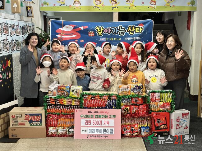 미래로어린이집 원아들은 라면 500개를 기탁하며 나눔의 의미를 배우고, 플리마켓 수익금 180만 원은 홀몸 어르신 겨울용품 마련에 사용됐다.