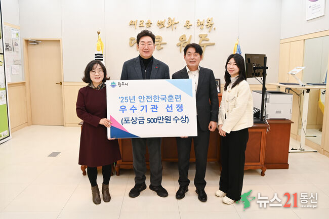 원주시는 행정안전부가 주관한 ‘2025년 재난대응 안전한국훈련’ 결과 우수기관으로 선정돼 포상금 500만 원을 받았다.