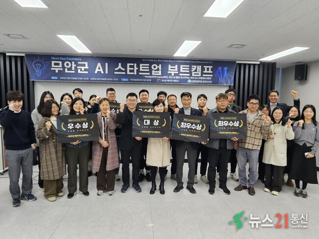[뉴스21 통신=박철희 ] 전남 무안군(군수 김산)은 지난 22일부터 23일까지 이틀간 열린 ‘무안군 AI 스타트업 부트캠프’가 참가자들의 뜨거운 호응 속에 성황리에 마무리됐다고 24일 밝혔다.