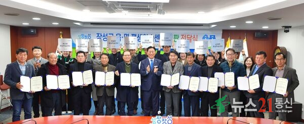 장성군이 지난 24일 군청 상황실에서 11개 읍면 주민자치위원장과 읍면장이 참석한 가운데 ‘읍면 평생학습센터’ 지정서 및 현판 전달식을 가졌다.