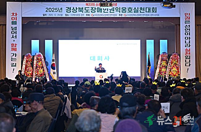 경상북도는 29일 경주 더케이호텔에서 경상북도장애인권익협회 주최로 장애인 회원과 자원봉사자 등 1,000여 명이 참석한 가운데 ‘2025년 경상북도 장애인 권익옹호 실천대회’를 성황리에 개최했다.