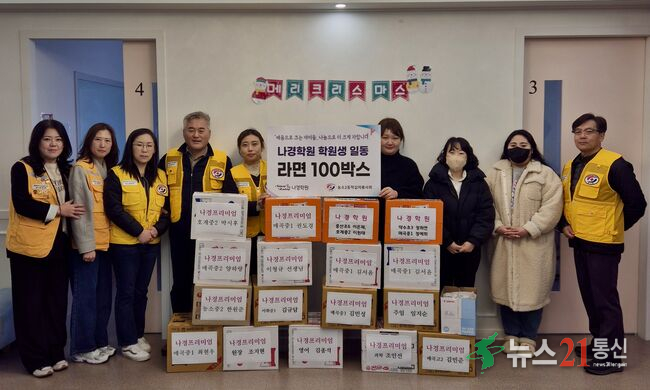 나경학원&나경프리미엄학원은 26일 원생들이 모은 라면 100박스를 북구 농소2동 적십자봉사회에 기부했다.