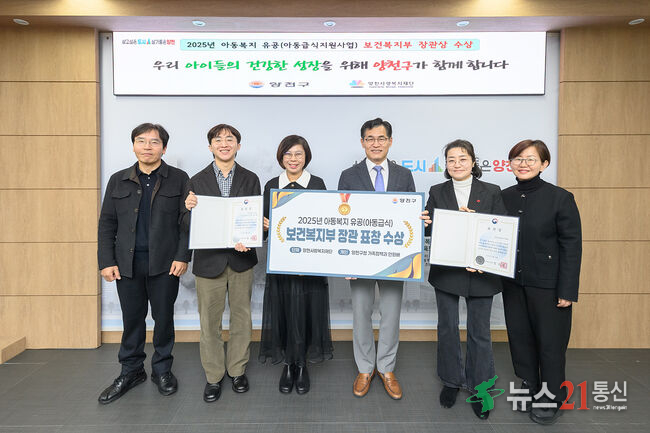 양천구(구청장 이기재)는 보건복지부가 주관한 ‘2025년 아동복지분야 유공 포상’에서 아동급식 사각지대 해소에 기여한 공로를 인정받아 개인과 단체부문 보건복지부 장관 표창을 수상했다고 30일 밝혔다.