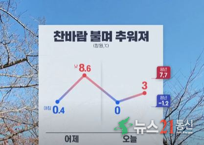 오늘 낮 기온은 서울 –3도, 철원 –5도, 광주 1도로 어제보다 5~7도가량 낮겠다.
