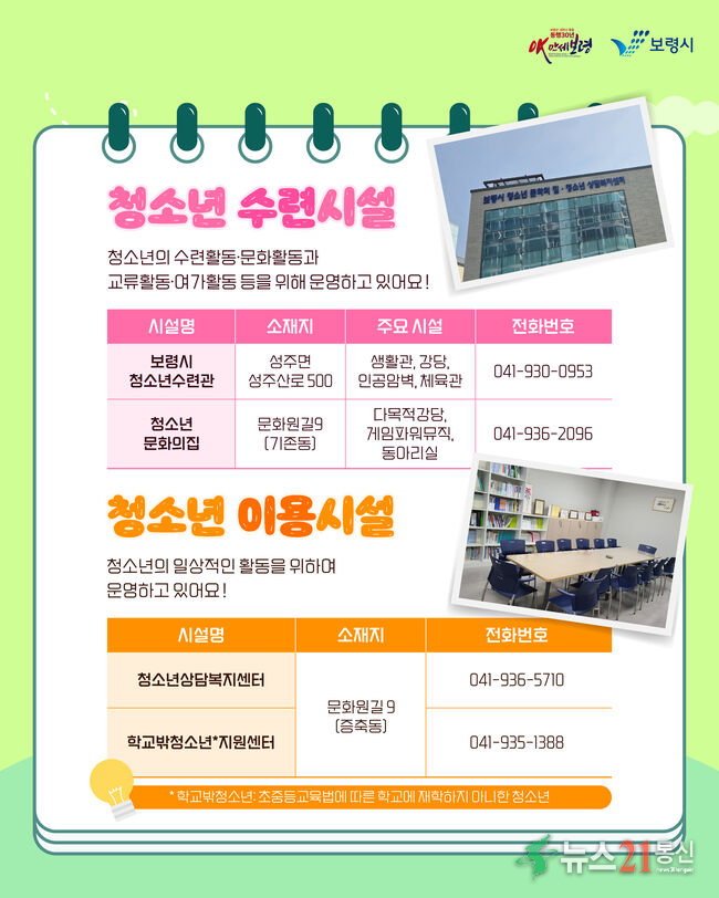 보령시는 청소년과 청년의 건강한 성장과 활동 지원을 위해 총 4개의 전용 시설을 운영하고 있다.