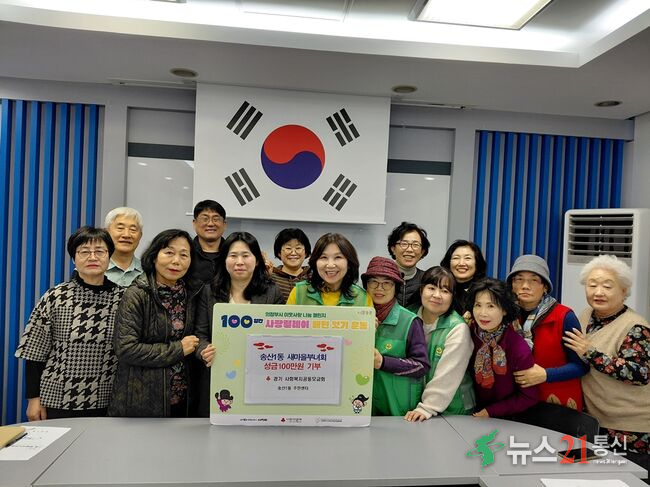 의정부시 송산1동주민센터(동장 전선녀)는 12월 30일 송산1동 새마을부녀회(회장 한미경)가 지역 내 저소득층과 청소년을 위해 성금 총 100만 원을 기부했다고 밝혔다.