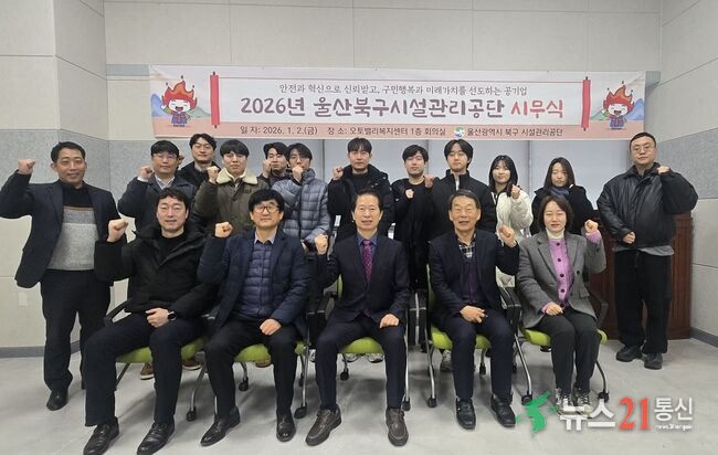 울산광역시 북구 시설관리공단(이사장 임정식)은 2일 공단 본부 1층 회의실에서 2026년도 시무식 및 인권경영헌장 선포식을 개최하고, 새해 공단의 경영 방향과 핵심 가치에 대한 전사적 공감대를 형성했다.