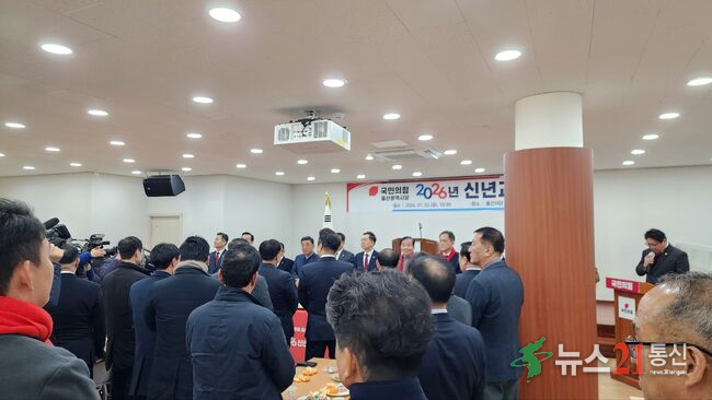 2026.01.02(금) 국민의힘 울산광역시당은 오전 10시 30분, 울산시당 5층에서 2026년 신년인사회를 개최했습니다. 이날 행사에는 박성민 울산광역시당위원장을 비롯해 각 구·군 국회의원, 시의원, 구의원, 당원 및 당직자들이 대거 참석해 새해 각오를 다졌습니다.