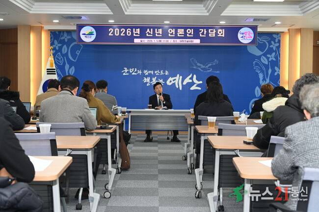 예산군은 5일 군청 대회의실에서 최재구 예산군수와 부서장, 언론인 등이 참석한 가운데 2026년 신년 언론인 간담회를 개최했다.