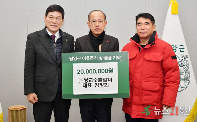 담양군에 따르면 쌍교숯불갈비(대표 김창회)에서 성금 2천만 원을 기탁한 데 이어, 담양장터몰 농업회사법인 주식회사(대표 박영수)와 꿈쟁이 목공방(대표 정창우)에서도 각각 100만 원과 50만 원의 성금을 전달하며 이웃사랑 실천에 동참했다.