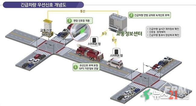 이번 시스템은 긴급차량의 이동 경로를 자동 인식해 교차로 신호를 제어, 녹색 신호를 우선 부여하고 일반 차량은 일시 정지시키는 방식으로 운용된다.