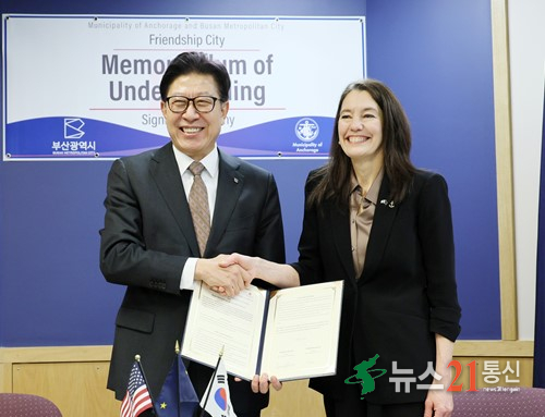 부산시(시장 박형준)는 현지시각 1월 5일 오전 10시 30분, 미국 알래스카주 앵커리지시청에서 알래스카주 최대 항만도시 앵커리지시와 우호협력도시 협정을 체결했다고 밝혔다.
