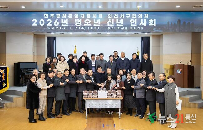 민주평화통일자문회의 인천서구협의회는 지난 7일 서구청 대회의실에서 자문위원, 서구청장, 내빈 등 40여 명이 참석한 가운데 ‘2026년 신년인사회’를 열고 희망찬 새해 출발을 다짐했다.