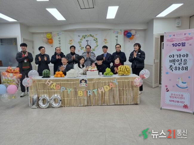 태백시 문곡소도동행정복지센터(동장 이문형)는 태백산봉사단(단장 전제봉)과 함께 지난 7일 문곡소도동에서 주민등록번호를 부여받고 백일을 맞은 아기를 대상으로 2026년 첫 번째 백일기념 행사를 진행했다.