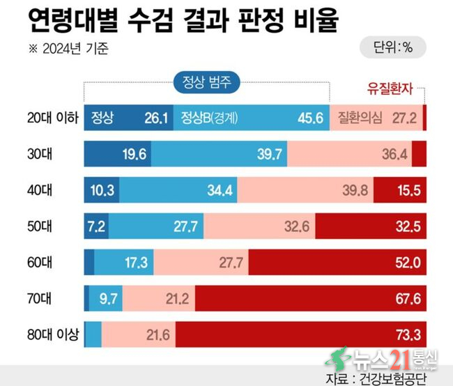 건강보험심사평가원에 따르면 만성질환, 근골격계 질환 등의 환자가 50대를 기점으로 폭증한다. 40대까지는 ‘관리하면 괜찮은’ 수준이지만, 50대가 되면 ‘치료하지 않으면 위험한’ 수준으로 악화된다. 특히 ‘침묵의 살인자’라 불리는 혈관 질환이 무섭다.
