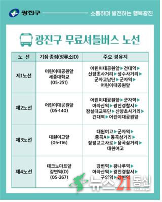 이와 함께 마을버스 5개 노선(광진01~05번), 총 30대를 대상으로 증회 운행하고, 첫차와 막차 시간을 각각 1시간 연장해 출퇴근 시간대 수송 능력을 강화했다.