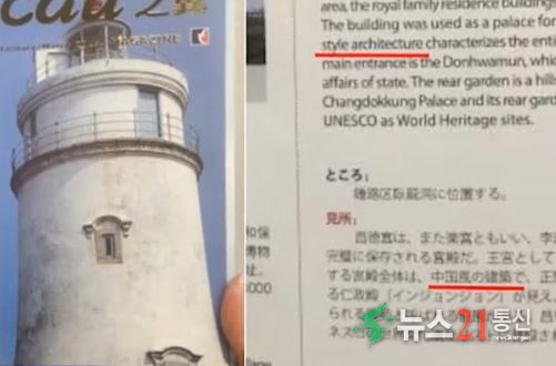 마카오항공은 기내에 비치한 ‘목적지 가이드 안내 책자’에서 창덕궁을 소개하며 영어·중국어·일본어로 중국식 건축물이라고 설명한 것으로 알려졌다.