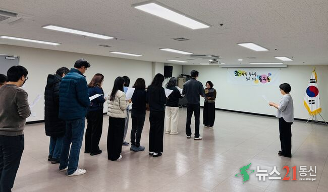구리시(시장 백경현) 동구동 행정복지센터(동장 김건영)는 1월 13일 전 직원이 참여한 가운데 청렴 실천 결의문을 낭독하며, 공정하고 투명한 공직사회 구현을 위한 실천 의지를 다졌다.이번 청렴 실천 결의문 낭독은 공직자로서의 청렴 의식을 제고하고, 주민에게 신뢰받는 행정서비스를 제공하기 위한 자발적 실천 의지를 다짐하고자 마련.