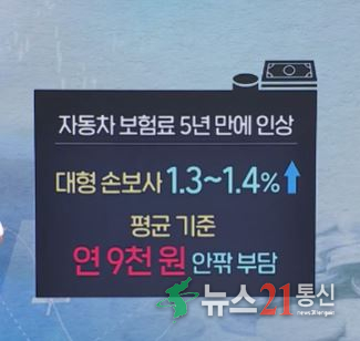 다음 달부터 대형 손해보험사 기준 자동차 보험료가 1.3~1.4% 인상돼, 평균 연 9천~9천700원 부담이 늘어난다.