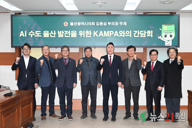 [뉴스21 통신=최세영 ] 울산광역시의회 김종섭 부의장(교육위원, 반구1동·반구2동·약사동)은 15일 오후, 시의회 4층 부의장실에서 ‘AI수도 울산’ 발전을 위한 정책 간담회를 주재하고, 울산의 주력산업인 제조업의 경쟁력 강화를 위한 정책 방향과 협력 방안을 논의했다. 이번 간담회에는 김종섭 부의장을 비롯해 한국자...