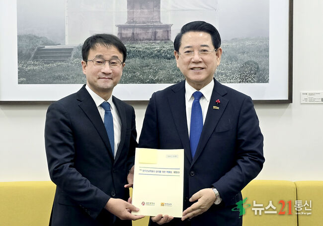 [뉴스21 통신=박철희 ] 김영록 전라남도지사가 15일 국회를 찾아 한병도 더불어민주당 원내대표와 면담을 갖고 (가칭) ‘광주·전남특별시 설치를 위한 특별법’ 제정안의 주요 내용을 설명하며 신속한 국회 통과를 건의했다.김 지사는 이 자리에서 에너지산업과 첨단전략산업을 비롯해 지역 핵심 성장동력 육성, 농산어촌 특례, 청...