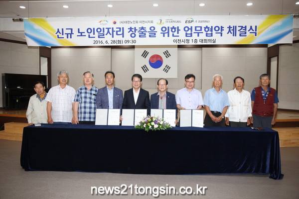 이천시(시장 조병돈)은 지난 28일 시청 대회의실에서 조병돈 이천시장을 비롯한 대한노인회 이천시(지회장 김형식), 관내 2개 기업체와 신규 노인일자리 창출을 위한 업무 협약식을 체결했다.