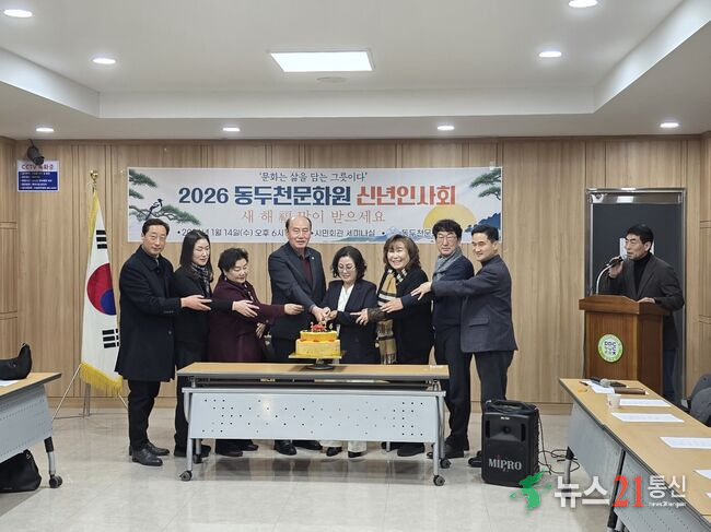 박형덕 시장은 축사를 통해 “동두천은 규모는 작지만 깊은 역사와 전통을 지닌 ‘문화가 숨쉬는 도시’”라며, 지역 문화 발전을 위해 헌신하는 문화원 회원들의 자긍심과 역할을 높이 평가했다. 이어 참석자들은 새해 소망을 담아 떡케이크 절단식을 진행하고, 정성껏 준비한 떡을 서로 나누며 문화 공동체로서의 결속을 다졌다.