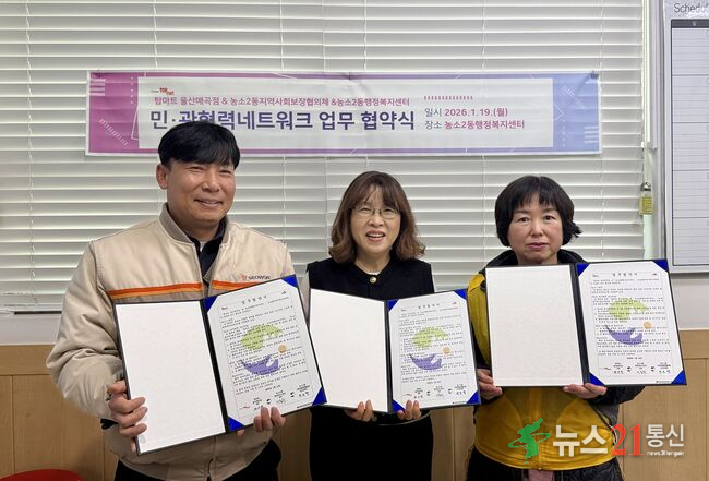 북구 농소2동 행정복지센터는 19일 탑마트 울산매곡점, 농소2동 지역사회보장협의체와 지역사회 문제 해결과 복지 증진을 위한 민·관 협력 네트워크 업무 협약을 체결했다.