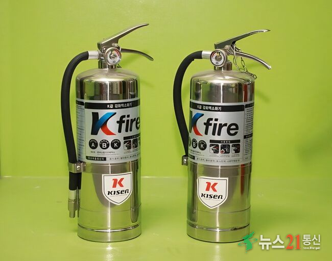 K급소화기는 비누화(Saponification) 작용으로 기름 표면에 막을 형성해 산소를 차단하고, 재발화를 효과적으로 방지한다.