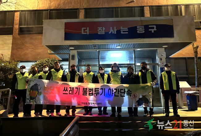 울산 동구 대송동 행정복지센터(동장 최태우)는 지난 1월 19일 오후 7시 30분부터 새마을협의회(회장 홍정흠) 회원들과 함께 ‘반딧불감시단 불법투기 야간 단속 활동’을 실시했다.