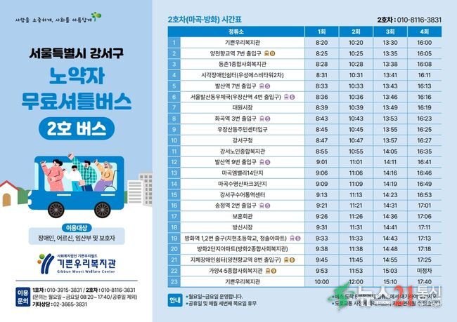 사진=강서구, 노약자 무료 셔틀버스 2호차 노선 및 배차 시간표