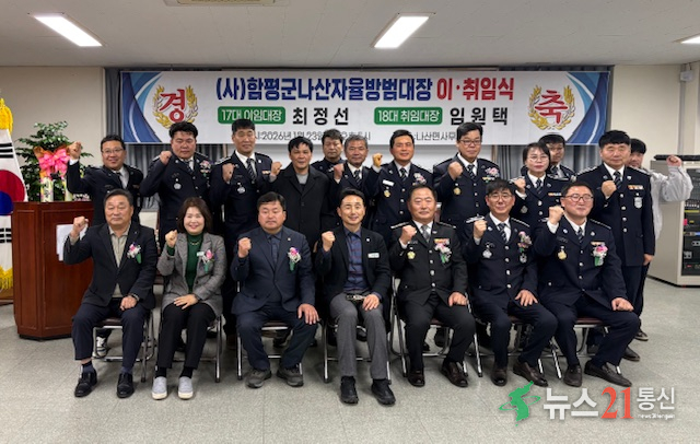 [뉴스21 통신=장두진 ] 전남 함평군 나산면 자율방범대가 지난 23일 면사무소 회의실에서 제17·18대 대장 이·취임식을 열었다고 26일 밝혔다.이날 행사에는 이남오 함평군의회 의장, 모정환 도의원, 윤앵랑·박문서·김은영·정현웅 함평군의회 의원, 김영철 나비골농협조합장, 김종덕 함평군 자율방범연합회장 등 주요 ..
