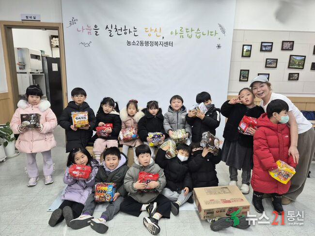 황금지어린이집은 30일 북구 농소2동 나눔냉장고에 라면 4박스를 이웃돕기 성품으로 전달했다.