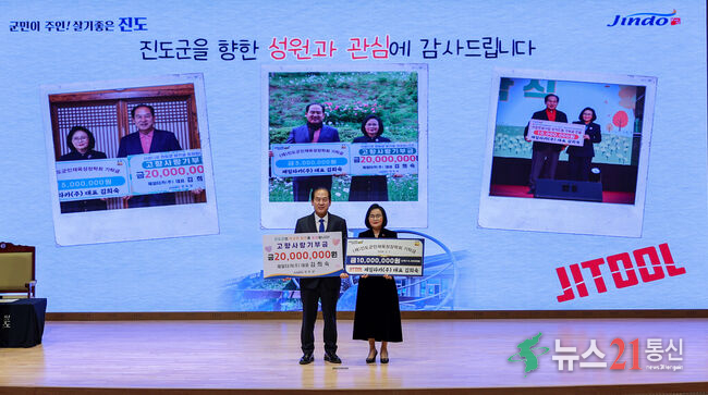이날 행사에서는 제일타카㈜ 김희숙 대표가 고향사랑기부금 2,000만 원과 진도군인재육성장학금 1,000만 원을 전달했다.