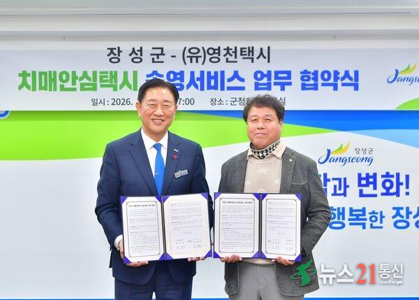 [사진2: 장성군이 4일 (유)영천택시와 업무 협약을 맺고 치매안심택시 운영을 이어가기로 했다.]