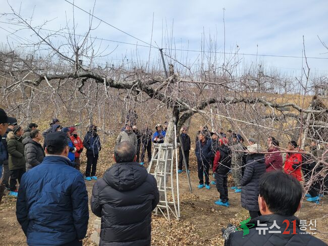 특히, 새해농업인 실용교육과 수형별 전정 교육에서는 개심형과 세장방추형을 중심으로 전정·수세 관리, 병해충 대응, 품질 향상 기술을 중점적으로 다뤄, 현재 재배 중인 과원의 안정적 관리와 생산성 향상에 실질적인 도움이 될 수 있도록 운영하고 있다.