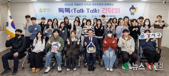 진교훈 구청장은 이날 구청 대회의실에서 ‘겨울방학 대학생 행정인턴 톡톡(Talk Talk) 간담회’를 열고 활동을 마친 대학생 35명과 대화를 나눴다.
