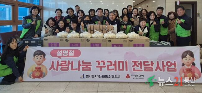 울주군 범서읍 지역사회보장협의체(공동위원장 백문현, 김효준)가 9일 설명절을 맞아 ‘2026년 설명절 사랑나눔 꾸러미 전달사업’을 실시했다.