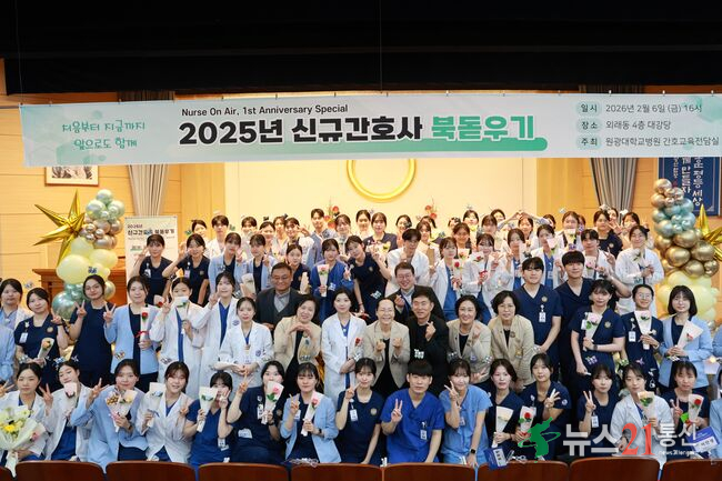 원광대학교병원(병원장 서일영)이 지난 6일 외래 1관 4층 대강당에서 ‘2025년 입사 신규 간호사 북돋우기 행사’를 열고 입사 1주년을 맞은 신규 간호사의 노고를 치하했다.