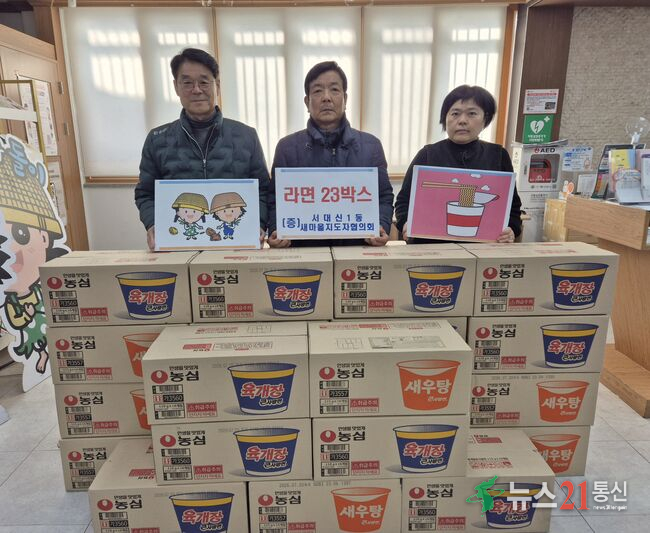 부산 서구 서대신1동 지역사회보장협의체(위원장 이복례)는 지난 5일 설 명절을 맞이하여 서대신1동 새마을지도자협의회(회장 곽문갑)의 후원을 받아 지역 내 홀로 어르신 등 취약계층 23가구에 컵라면을 전달하며 따뜻한 이웃사랑을 실천했다.