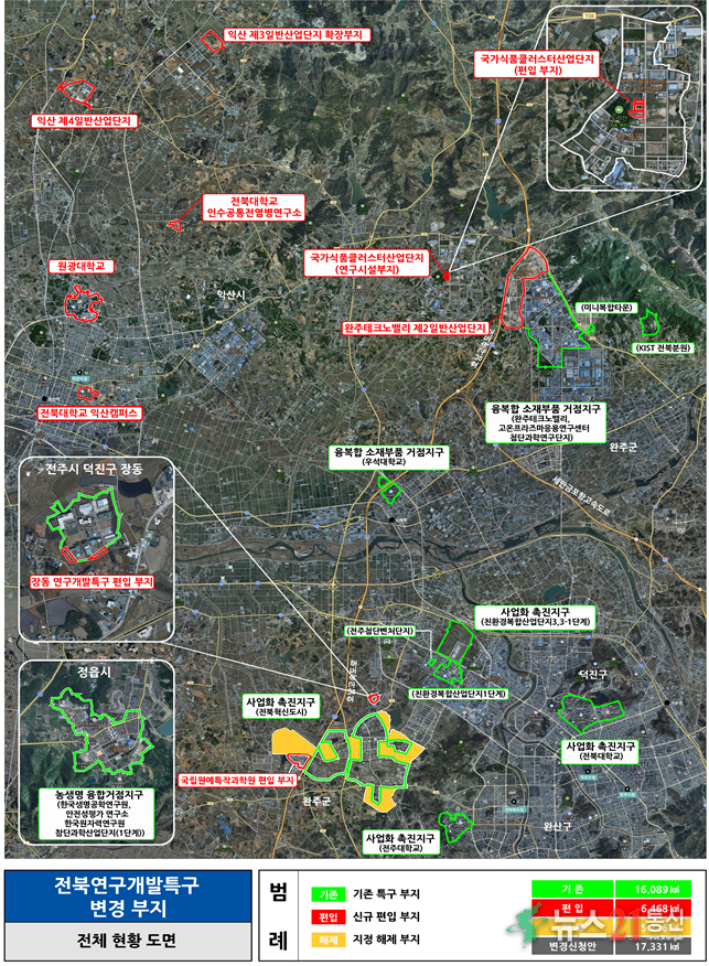 원광대학교부터 △전북대학교 익산캠퍼스 △인수공통전염병연구소 △국가식품클러스터(1단계) 연구시설 부지 △제3일반산단 확장부지 △제4일반산단을 아우르는 익산 곳곳이 대한민국 농생명 산업의 핵심 기지로 탈바꿈하게 된다.