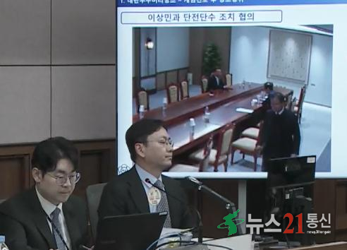 이후 이상민 전 장관은 한덕수 전 국무총리와 약 16분 동안 마주 앉아 서류를 돌려보며 상의한 사실이 확인된다.