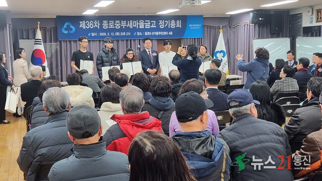 종로중부새마을금고는 12일 종로5·6가동 주민센터 4층에서 제36차 정기총회를 개최하고, 2025년도 결산 및 2026년도 사업계획과 예산(안) 등의 심의·의결했다.