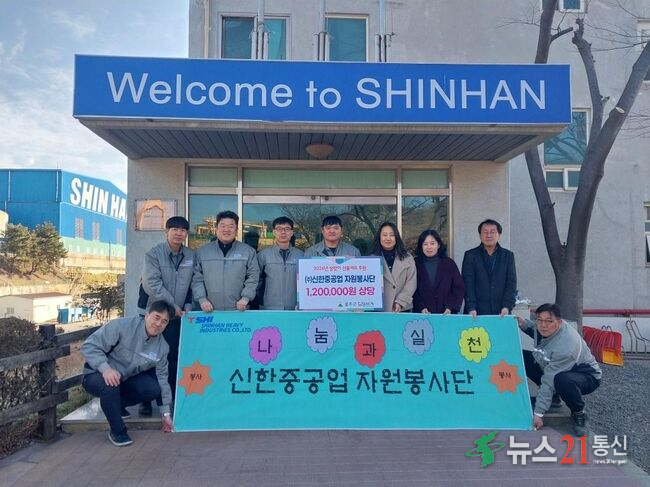 ㈜신한중공업 자원봉사단(단장 이상구)이 12일 설명절을 맞아 울주군 취약계층 아동 50가구를 대상으로 120만원 상당의 생필품 선물세트를 전달했다.