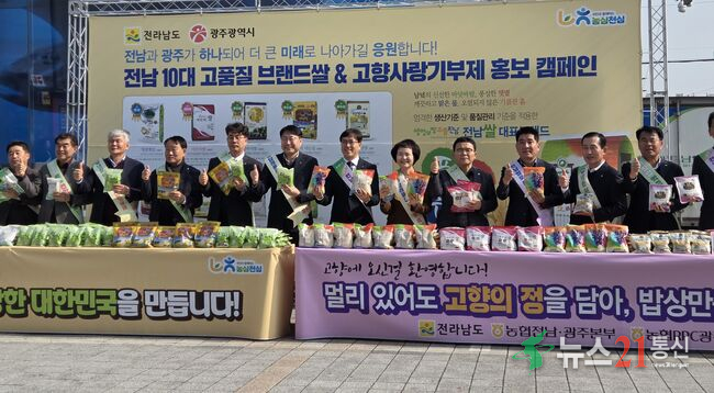 [뉴스21 통신=박철희 ] 전라남도가 설 명절을 앞두고 광주송정역에서 귀성·귀경객을 대상으로 전남·광주 브랜드 쌀과 고향사랑기부제를 홍보하는 캠페인을 펼쳤다.