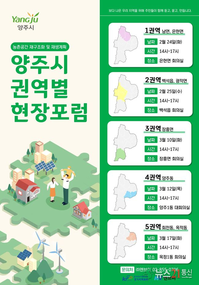 양주시가 오는 24일부터 3월 17일까지 5차례에 걸쳐 ‘농촌공간 재구조화 및 재생 기본계획’ 수립을 위한 권역별 주민현장포럼을 개최할 예정이다.