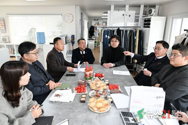 양주시가 지난 20일 은현면 소재 의류 도매 전문기업 ㈜가인임포트(대표 유승민)를 방문해 기업 현장 애로사항을 청취하고 개선 방안을 논의했다.