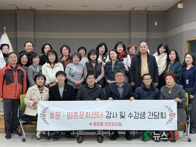북구 효문동 주민자치회는 24일 효문동 행정복지센터 회의실에서 주민자치센터 강사 및 수강생 간담회를 열어 건의사항을 듣고 이용 만족도 향상을 위한 의견을 나눴다.